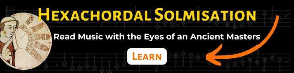 This way of reading music, used by the ancient Masters, is called Hexachordal Solmization, and you can learn it in the Solmisation Course of the Renaissance Musicus Practicus Path.